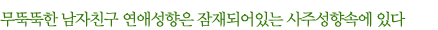 ¹«¶Ò¶ÒÇѳ²ÀÚ ¹«¶Ò¶ÒÇѳ²Æí µî ³²ÀÚÀÇ ¿¬¾Ö¼ºÇâÀº »çÁÖÆÈÀÚ¿Í °ÑÀ¸·Î µå·¯³ª´Â ¿òÁ÷ÀÓÀ̸¹ÀÌ ´Ù¸£±â ¶§¹®¿¡ ¿î¼¼ÀÇ ¼ºÇâÀ» ¹Ýµå½Ã ¤¾îºÁ¾ßÇÑ´Ù.